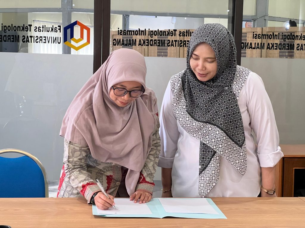 Malang, 29 Oktober 2025 — Gerak cepat dan penuh terobosan langsung ditunjukkan oleh Dekan Fakultas Sains dan Teknologi Informasi (FSTI) Universitas Widya Gama (UWG) Malang, Fitri Marisa, S.Kom., M.Pd., Ph.D. Baru sehari pasca pelantikan, ia langsung melakukan langkah strategis memperluas jejaring akademik melalui penandatanganan Memorandum of Agreement (MoA) dengan Fakultas Teknologi Informasi (FTI) Universitas Merdeka (Unmer) Malang.