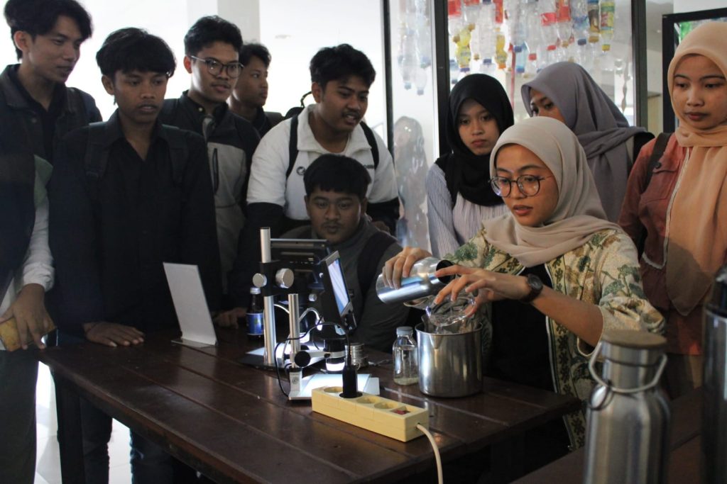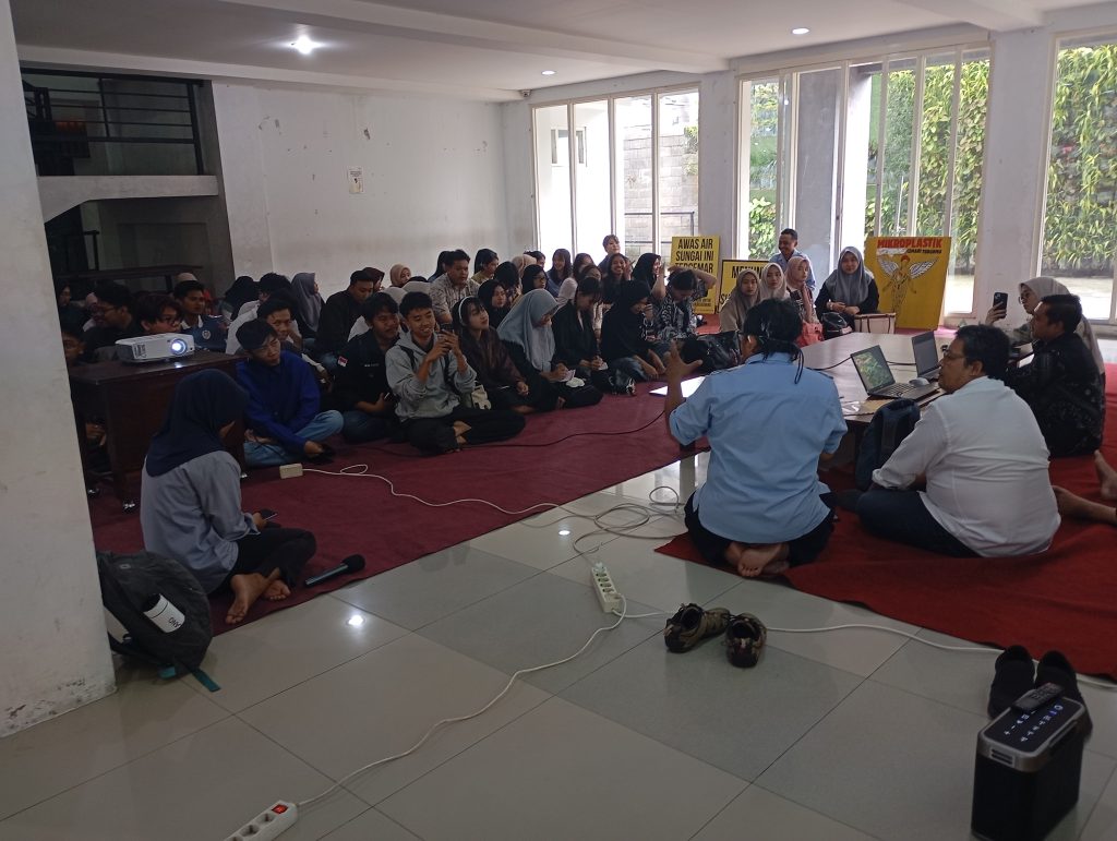 Rafika Aprilianti, peneliti ECoton, yang memaparkan hasil riset berjudul “Temuan Mikroplastik di Udara 18 Kota di Indonesia.” Ia mengungkap bahwa mikroplastik kini tidak hanya mencemari air dan laut, tetapi juga udara yang kita hirup setiap hari. Partikel plastik yang terpecah dari limbah rumah tangga dan industri dapat masuk ke tubuh manusia melalui pernapasan, kulit, maupun makanan dan minuman.